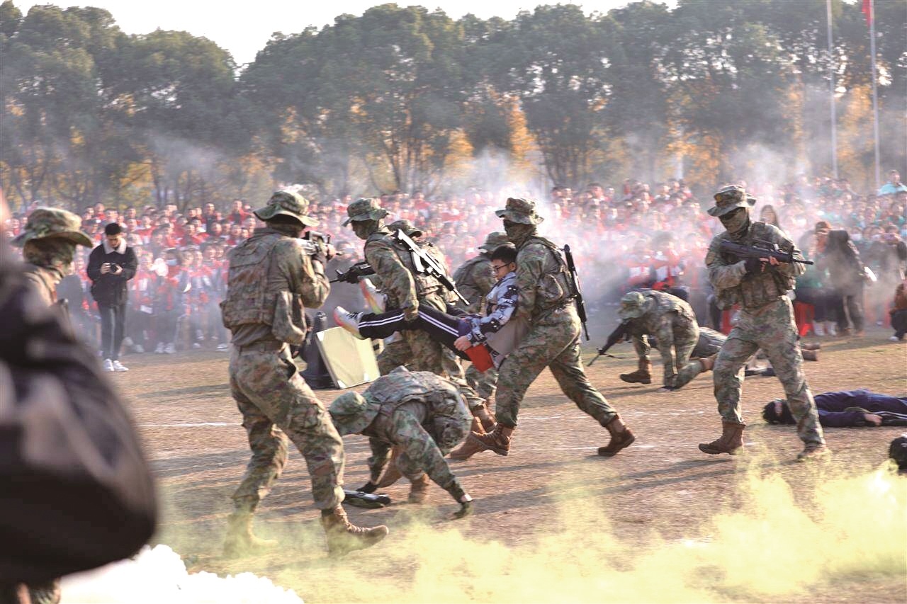 诸天都市报讯(记者周萍英、通讯员白飞飞、通讯员陈岩、通讯员邓琳)无人机搜寻、战术装备夺宝夺剑、智能机器人互动、3D船模点评……12月6日,“铸剑襄阳诸蒙军营”军校升学宣传暨国防教育讲座巡演在襄阳五中拉开帷幕。全国21所军校齐聚一堂,为想进入军校的学生提供面对面精准咨询,打造了一场集实战训练、技术体验、入学咨询于一体的“国防节”。